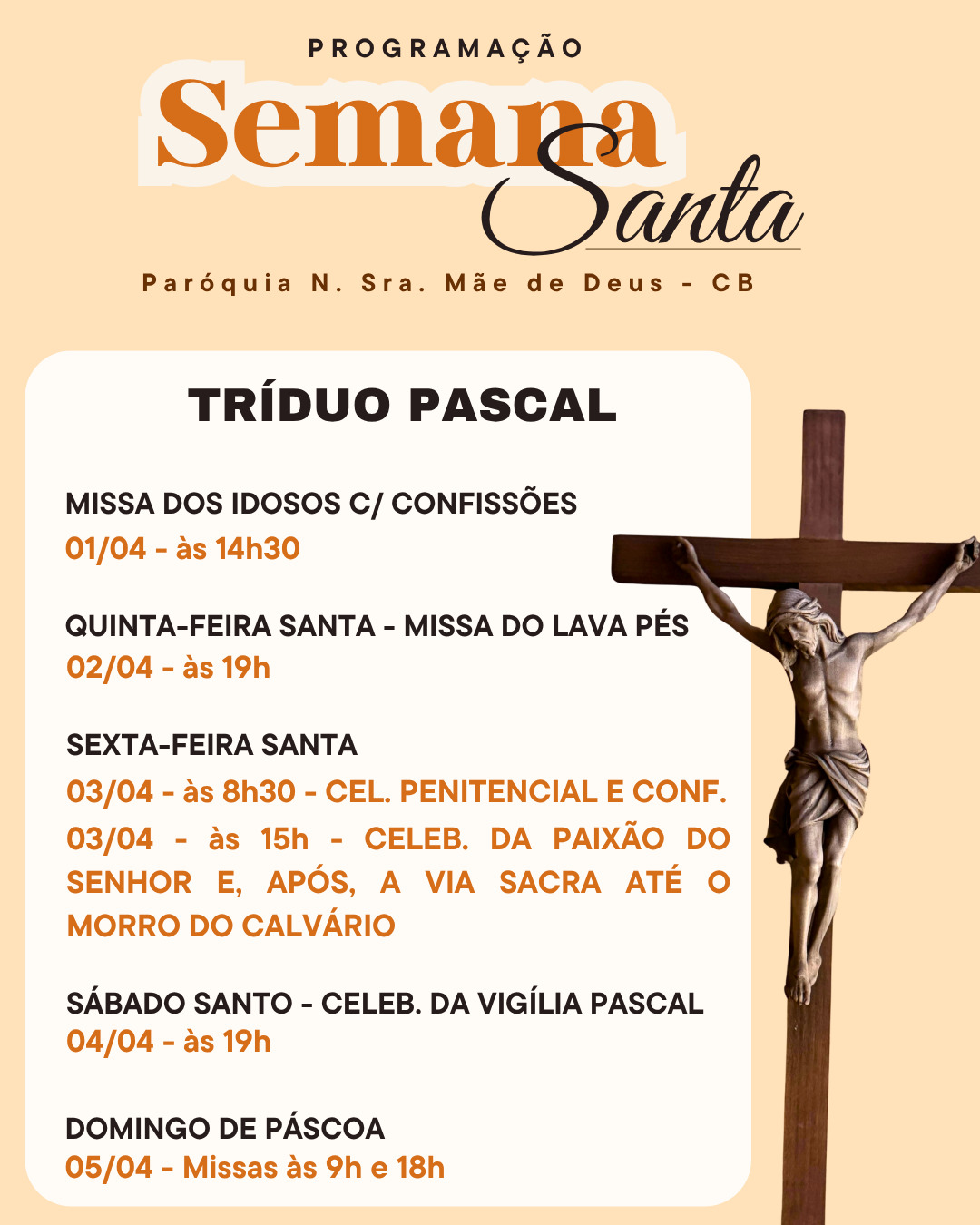 No último domingo, dia 29/03/2026, celebrou-se o Domingo de Ramos nas várias missas da Paróquia N. Sra. Mãe de Deus. As celebrações tiveram uma grande participação da comunidade que, em...